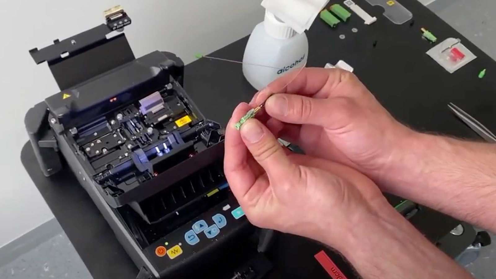 Fitel Fusion拼接器允许使用适当的Diamond工具在光纤和电缆上进行SOC连接器拼接,如Fanouts和Breakouts。观看视频在右侧部分看到钻石光纤专家使用Fitel融合剪接与钻石工具。