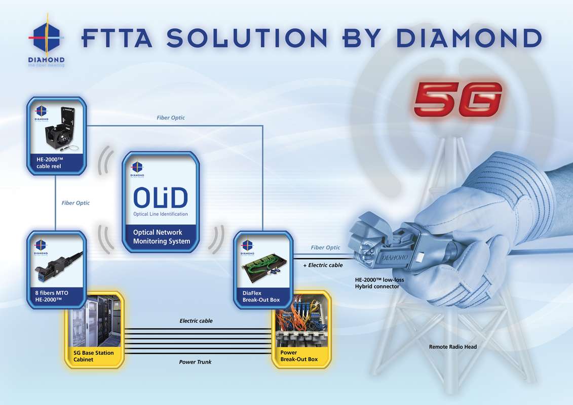 金刚石光纤连接解决方案非常适合现代光纤到天线(FTTA)部署,如4G/5G网络前端。金刚石光纤连接解决方案,在户外环境中具有高可靠性,以及机械轻盈和紧凑。因此,它们结合了高质量的材料和机械精度,以及在插入损耗、回波损耗和连接可靠性方面的最佳光学性能。此外,它们的模块化允许客户定制解决方案,简化了整个连接布局。